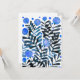 Whimsical blue flowers and foliage. Flowers and foliage botanical illustration card.