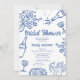Whimsical Blue Hand Drawn Cherub Bridal Shower Invitation