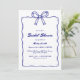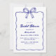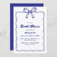 Whimsical Blue Hand Drawn Ribbon Bow Bridal Shower Invitation