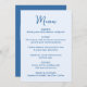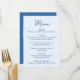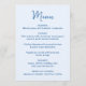 Share your reception menu in style with this whimsical wedding menu card designed to coordinate with modern and playful wedding stationery. The front of the menu features “Menu” displayed in a handwritten blue script with your wedding menu details shown below on a light blue background, creating a fresh and cheerful look for your reception tables. The back of the wedding menu card showcases a hand-drawn light blue heart surrounding the couple’s names and wedding date, adding a sweet and cohesive detail. Perfect for couples planning a fun, romantic celebration, this customizable wedding reception menu adds color and personality while keeping menu selections easy to read for guests.