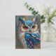 AI generated art of a whimsical blue owl with pink and yellow paint splatters