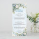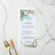 Pair with matching invitations, place cards, and table numbers for a cohesive, stylish look. Make your reception unforgettable with this dusty blue and gold floral menu — the perfect finishing touch for your elegant wedding day.