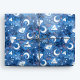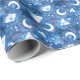 Whimsical Blue Watercolor Moths and Moon Wrapping Paper