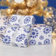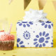 Pretty blue and white floral patterned gift wrap. Abstract blue daisies on white.