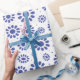 Whimsical Blue White Abstract Daisy Pattern Wrapping Paper
