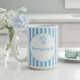 Whimsical Blue White Stripe Preppy Monogram Coffee Mug
