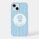 Whimsical Blue White Stripe Preppy Monogram iPhone 15 Case