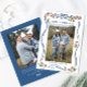 Whimsical Boho Blue Christmas Bow Ribbon 2 Photo Holiday Card