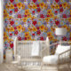 Whimsical Boho Chic Orange Red Pink Florals Wallpaper