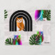 Whimsical Boho Owl & Tropical Monstera Leaf Postcard