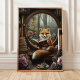Step into an enchanting woodland library with this whimsical fox art print featuring a curious red fox reading a book by a round window overlooking a magical forest. Surrounded by vintage books, warm cookies, daisies, and a cosy fall view, this fantasy scene is perfect for book lovers, woodland nursery decor, or anyone who adores charming animal illustrations. A beautiful addition to cottagecore homes, cosy reading nooks, and whimsical art collections.