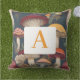 Whimsical Botanical Mushroom Pattern with Monogram Cushion