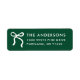 Bring classic holiday style to your envelopes with these personalised Christmas return address labels. A white hand-drawn bow stands out against a rich green background, with your family name and return address displayed in white lettering. Ideal for Christmas cards, holiday party invitations, and seasonal correspondence.