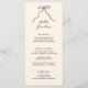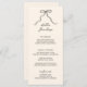 Whimsical bridal shower menu featuring a beautiful hand drawn bow in a fun and playful style, accompanied by a casual, handwritten font in a neutral colour scheme of dark grey on ecru. This menu can be customised with the guest's name.