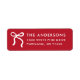 Add a festive finishing touch to your holiday mail with these personalised Christmas return address labels. The design features a white hand-drawn bow on a classic red background, paired with your family name and return address in crisp white lettering. Perfect for sealing Christmas cards, holiday party invitations, and seasonal correspondence, these labels bring a cheerful and coordinated look to all your holiday mailings.