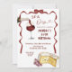 Whimsical Bow Wine Sip and Dip Birthday Invitation, Red Quirky Stripes Coquette Bow Birthday Invite, Wine and Cheese Birthday Invite
