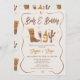 Whimsical couples shower invitation featuring a cowgirl boot, bottle, glass and cactus in brown and orange. This couples shower invitation also features a quirky frame with hearts and retro stars.