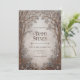 Set a whimsical and enchanting tone for your celebration with this breathtaking woodland composition. The design is anchored by two majestic, dark wood grain trees whose branches reach upward, adorned with delicate white blossom cluster details and soft blue leaf accents. A rich, misty beige backdrop with a subtle stone-like texture provides a warm, vintage feel to the central space. At the base, intricate bronze filigree swirl patterns and metallic-toned vines weave together with organic grace, creating a sense of timeless fairytale luxury. This wedding invitation is an exceptional choice for a rustic outdoor ceremony, an enchanted forest-themed celebration, or a sophisticated vintage-inspired gala. It ensures your event details are presented with a touch of magic and high-end artistic drama from the moment the envelope is opened.