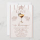 Whimsical love is brewing themed bridal shower invitation featuring a beige arch, line pattern background, hand drawn bow, and some cherubs. This love is brewing bridal shower invitation also features a espresso martini cocktail image. Great for someone looking for a quirky bridal shower invitation.