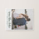Whimsical Brush Script Photo Save the Date Green Jigsaw Puzzle