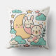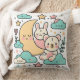 Whimsical Bunny and Bear Moon Decorative Pillow