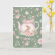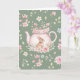 Whimsical Bunny Green Teapot Floral Easter Card. This design features a whimsical watercolor bunny peeking from a beautiful floral teapot. Delicate pink and white blossoms against a soft sage green background. Perfect for anyone who loves bunnies, tea parties, or charming cottagecore aesthetics. A sweet touch for Easter, baby showers, birthdays.