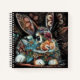 Whimsical Bunny Rabbit Floral Abstract Black Teal Notebook