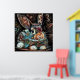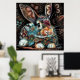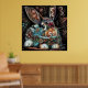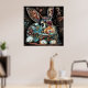 Whimsical Bunny Rabbit Floral Abstract Black Teal Poster