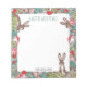 Perfect for anyone who loves bunny rabbits and whimsy, this notepad can be personalised with a name for a custom look! Brown woodland bunnies are scurrying among leaves, ferns and flowers on a grey background. There are also berries and mushrooms for each rabbit to enjoy! Greens, pinks and teal set off the tan animals. Reads, "Easter Greetings" at the top of the white note area and your personaliztion at the bottom - easy to customise using the text template and edit menu. Original artwork and design by Tuzi Williams.