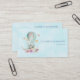 Business cards with a charming illustration of a baby bunny riding along in a hot-air balloon decorated with a fancy ribbon, flowers and butterflies.