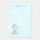 Personalised custom sticky notes in a large size. Designed with a charming illustration of a little bunny riding along in a hot-air balloon decorated with a fancy pink ribbon, along with some flowers and butterflies. A pastel blue watercolor background gives it a vintage dreamy feel.