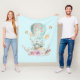 Whimsical Bunny Riding in a Hot Air Balloon Fleece Blanket