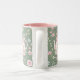 Whimsical Bunny Teapot Floral Spring Two-Tone Coffee Mug. This design features a delightful whimsical bunny nestled within a pink teapot, surrounded by spring blossoms and green foliage. This floral pattern brings a touch of spring magic to your everyday sips. Perfect for tea, coffee, or hot cocoa, it makes a delightful gift for Easter, Mother's Day, birthdays, or any occasion for a bunny lover.