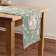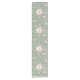Whimsical Bunny Teapot Spring Floral Pattern Short Table Runner. Whimsical design featuring an adorable bunny nestled inside a delicate pink teapot, surrounded by watercolor flowers and lush green leaves. The sage green background enhances the gentle beauty of this pattern. Ideal for Easter decor.