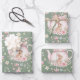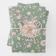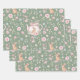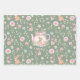 Whimsical Bunny Teapot Spring Floral Pattern Wrapping Paper Sheets. Whimsical design featuring an adorable bunny nestled inside a delicate pink teapot, surrounded by watercolor flowers and lush green leaves. The soft sage green background enhances the gentle beauty of this pattern. Ideal for Easter or baby showers.