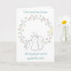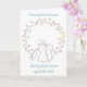 Two adorable, whimsical bunnies are at the bottom of a floral and heart line wreath on the front of this cute greeting card. Within the wreath is a yellow crescent moon. The text on the front says "I know sometimes it seems...like it's just you and me against the world." The inside has the continued sentiment "I'm so glad you are always by my side. It will be OK" between two pink hearts. Perfect when you and that special someone need a bit of reassuring and encouragement.