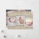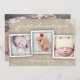 A collage of three photos is featured on the front of this lovely, fun design that incorporates a burlap texture effect and festive white sprinkling of snowflakes across the top and bottom edge of the card. Large additional photo on the back. Whimsical typography in white wishes family and friends a Merry Christmas from your family to theirs.