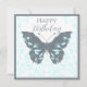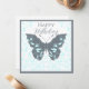 Celebrate someone special with this elegant butterfly Happy Birthday greeting. Featuring a graceful grey butterfly accented with aqua blue floral details, this design blends modern style with a nature-inspired touch. Perfect for friends, family, or coworkers, this whimsical yet sophisticated design makes a memorable way to share birthday wishes. Ideal for anyone who loves butterflies, florals, and unique artistry.