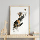 Whimsical Calico Cat & Butterfly Watercolor Art Poster
