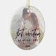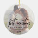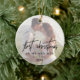 This whimsical calligraphy faded photo mr and mrs holiday ornament is the perfect modern Christmas tree decoration. The design features elegant yet rustic typography with two of your photos, one on the front and one on the back. This keepsake ornament reads "first Christmas as mr and mrs". Personalise it with the year.