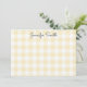 Create your own personalised stationery note cards with a cute pastel lemon yellow and white gingham chequered pattern with whimsical calligraphy for her name.