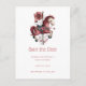 Save the date postcard with a cute retro style carousel horse. Drawn in Pretty pink colors with fancy flowers.