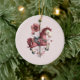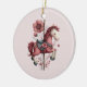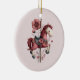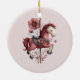 An ornament with a cute retro style carousel horse. Drawn in Pretty pink colors with fancy flowers.