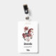 Name tag with a cute retro style carousel horse. Drawn in Pretty pink colours with fancy flowers.