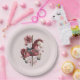 Paper plates with a cute retro style carousel horse. Drawn in Pretty pink colors with fancy flowers.