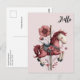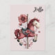 A postcard with a cute retro style carousel horse. Drawn in Pretty pink colors with fancy flowers.