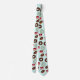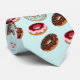 Fun all purpose neck tie done in light aqua, with cartoon graphics of an assortment of yummy looking doughnuts.