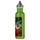 A sweet Christmas water bottle with a cute elf cartoon and a festive background.