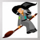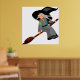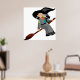 Whimsical Cartoon Witch Flying on Broomstick Poster