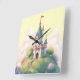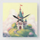 Whimsical castle with green garden square wall clock